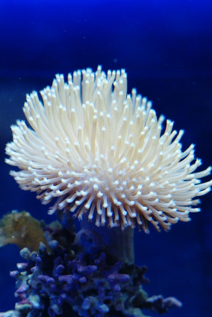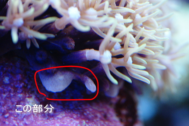 んで ウミキノコです。 これは昨日 移動直後です。 そして一時ポリプ開花。