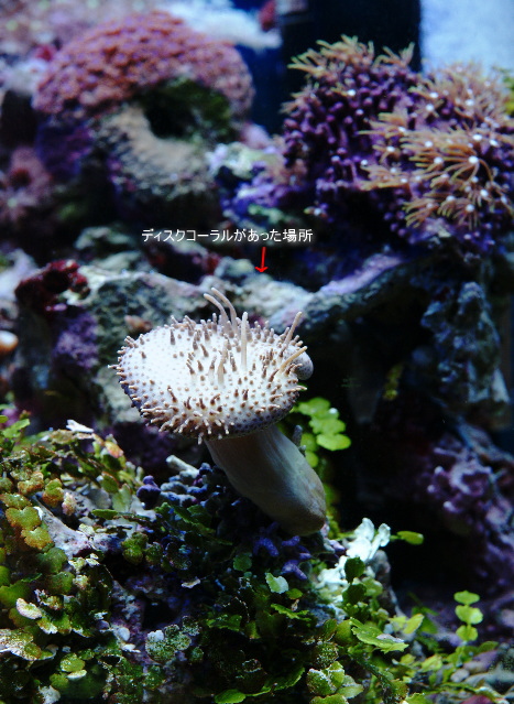 実は ウミキノコを移動する前に お化けディスクコーラルを水槽から出しました。