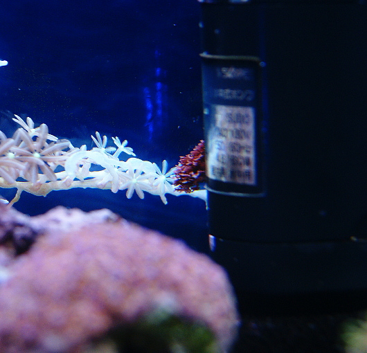 そして 今朝のウミキノコの様子です。 これは照明が点く前の暗い状態。