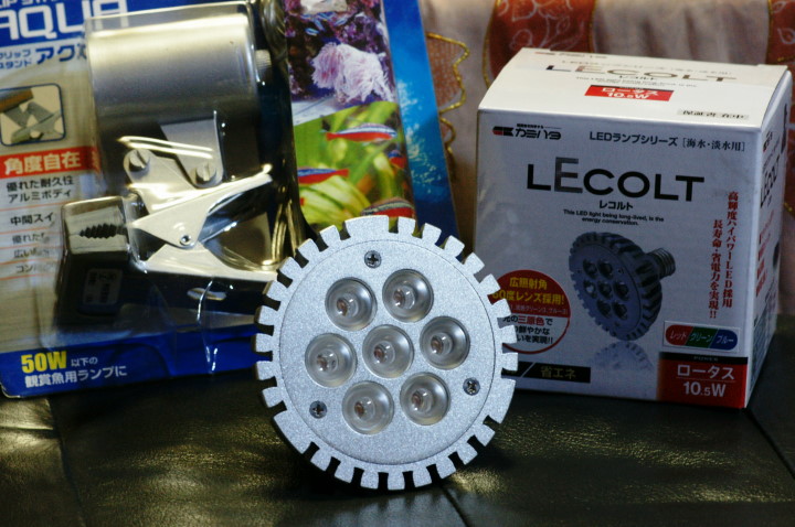 クリップ式灯具に付けて水槽を照らしています。