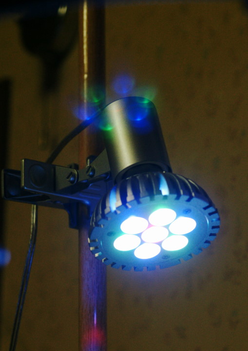 以前にも話しましたが 赤・青・緑の光の三原色で 水槽内は白く輝いてます♪