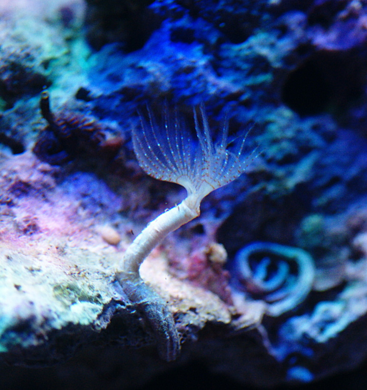 私の水槽には以前からいる 透明っぽいのと赤いのの小さなケヤリが住み着いてます(笑)