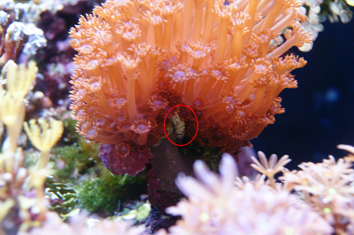 こいつが出てくると 廻りのポリプが嫌がって 縮みがちになります。