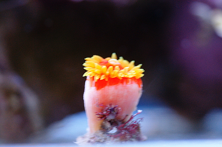 午前9時半に照明が点きますので ポリプが伸び始めています。