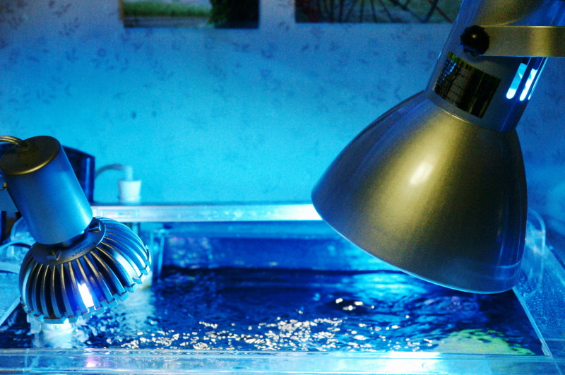 45センチキューブ水槽での照明を色々と交換して 3つの照明となりました。