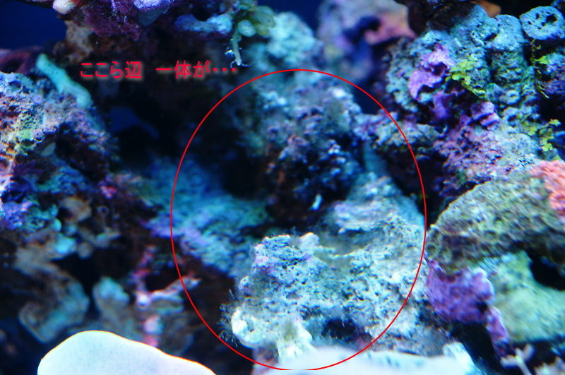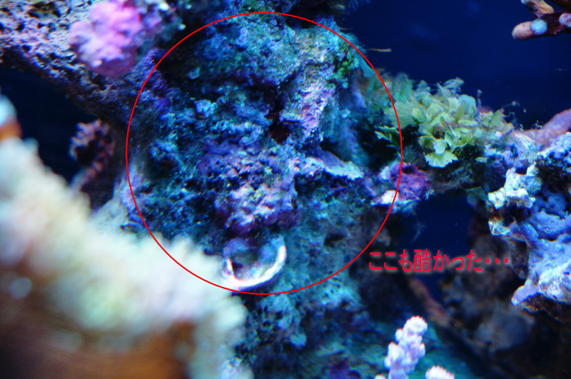 後ろ側の土台のライブロックを撮り出したので 綺麗にする前とは若干レイアウトが違います。