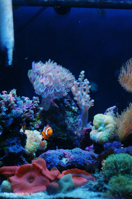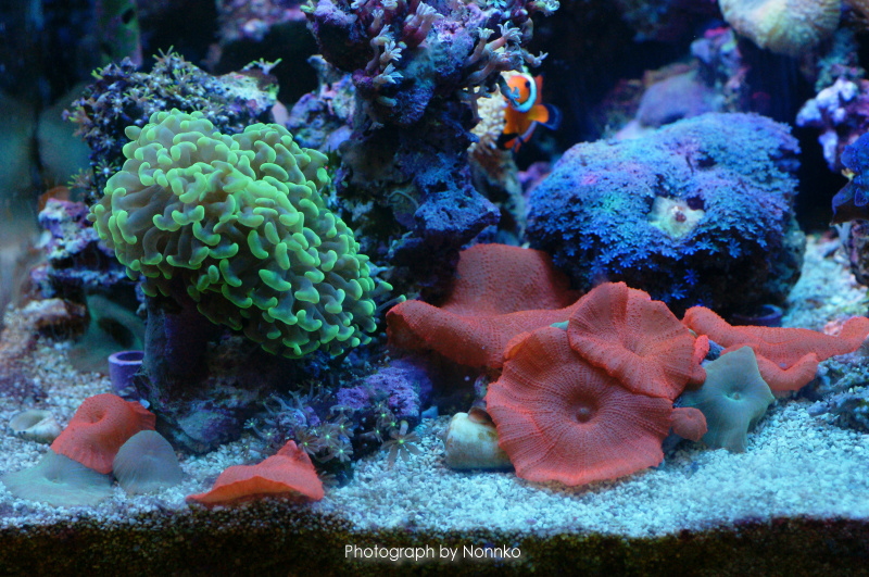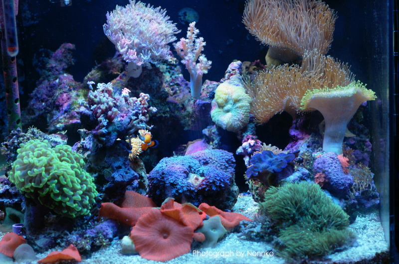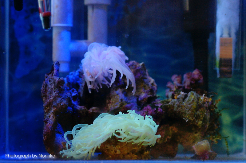 左写真 ニモ達は元気です♪ サンゴ達も比較的元気で何とかなってます。