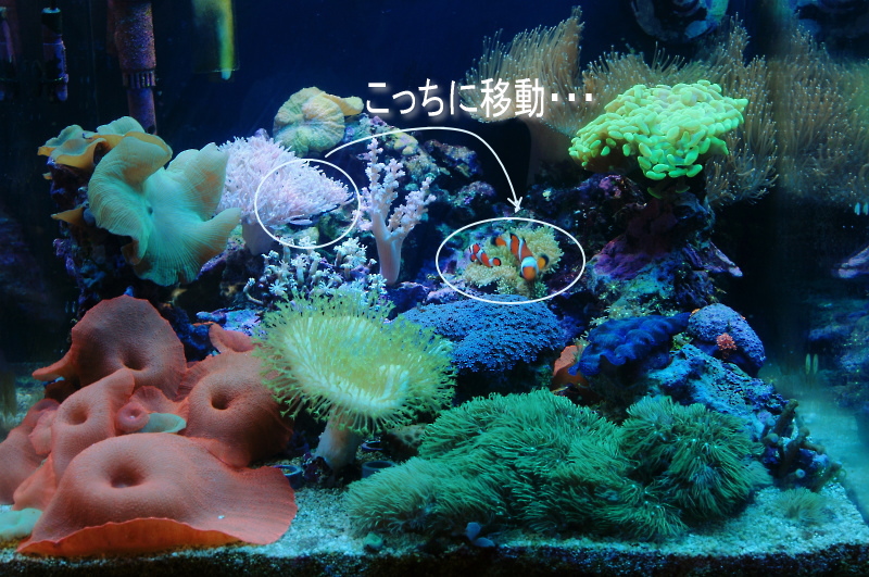 ハタゴイソが動こうが何しようが 悠然とイソギンのベッドを満喫してる2匹なのでありました(笑)