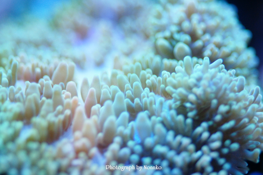 以前 30センチ水槽で暮らしてた頃は 触手は伸び伸びだったけれど