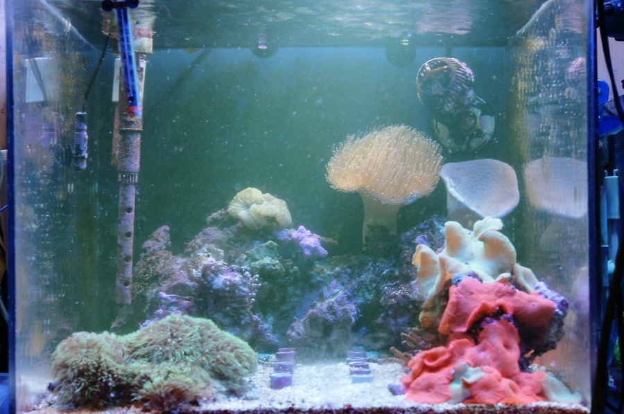 新海水と45センチキューブ水槽の元水を混合で入れました。