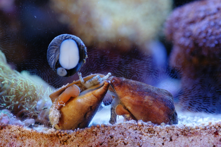 ガラス面担当のシッタカ貝 2匹(ここには1匹しか写っていませんが)
