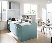 私は キッチンは最初からリビングステーションのLクラスと決めていました。