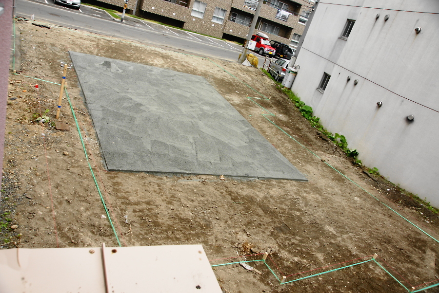 ところどころに杭を打ち、マンションの形が判るようになっています。