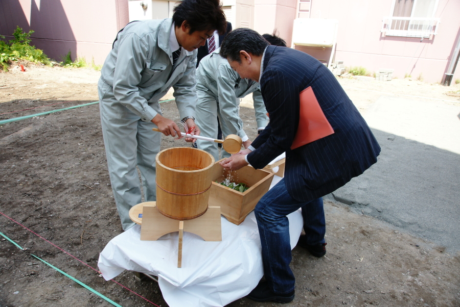 午前10時から始まった地鎮祭は1時間ほどで終わり、