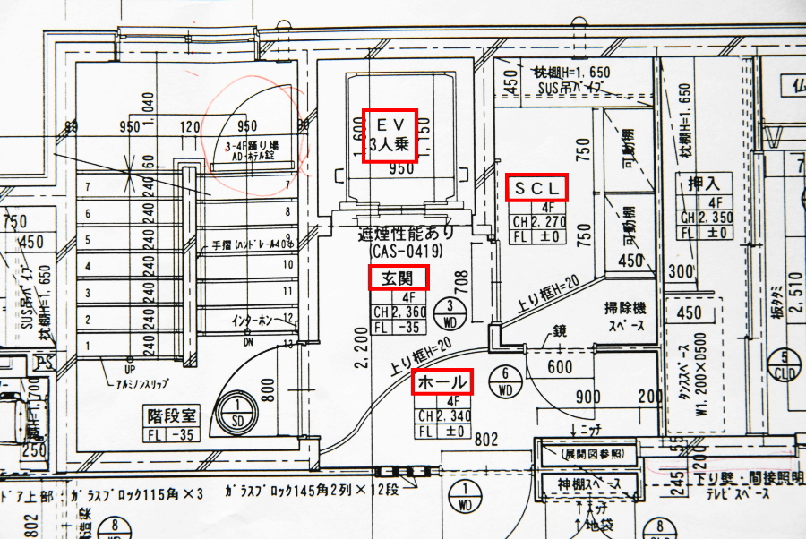 1Fの玄関からは直通エレベーターで一気に4Fの玄関まで上がります。