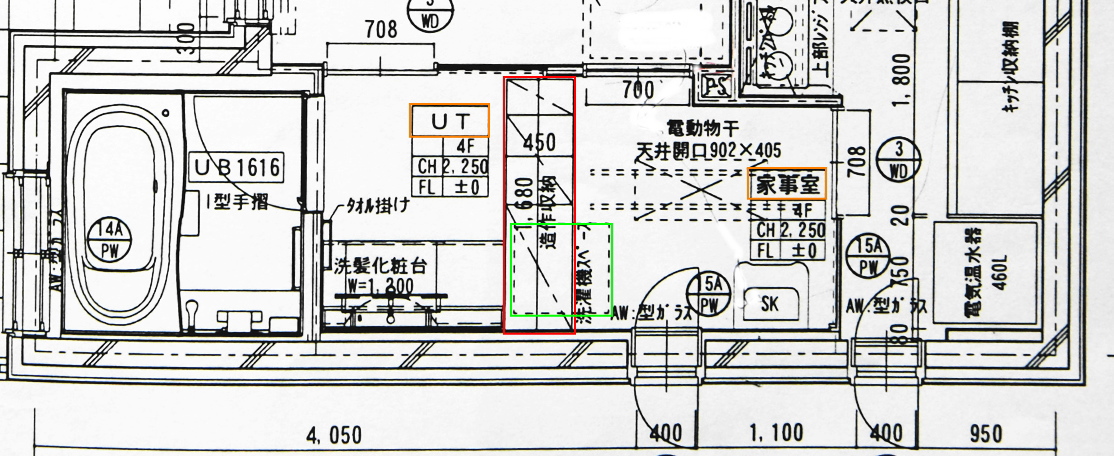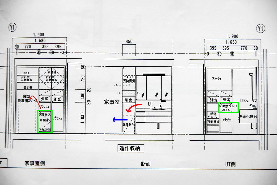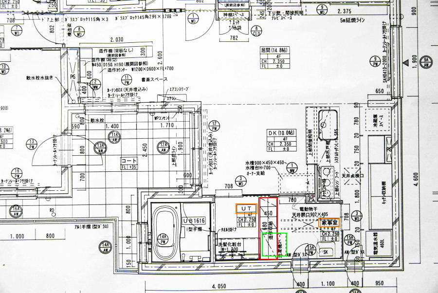 リビングとキッチン部分を飛び越して 今日は家事室の設計図をお見せします。