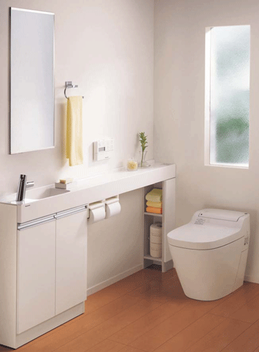 我が家のトイレも一番先に減額の対象となり、結局手洗いのカウンターだけメーカーから買い、下の収納スペースは大工さんの造作となりました。