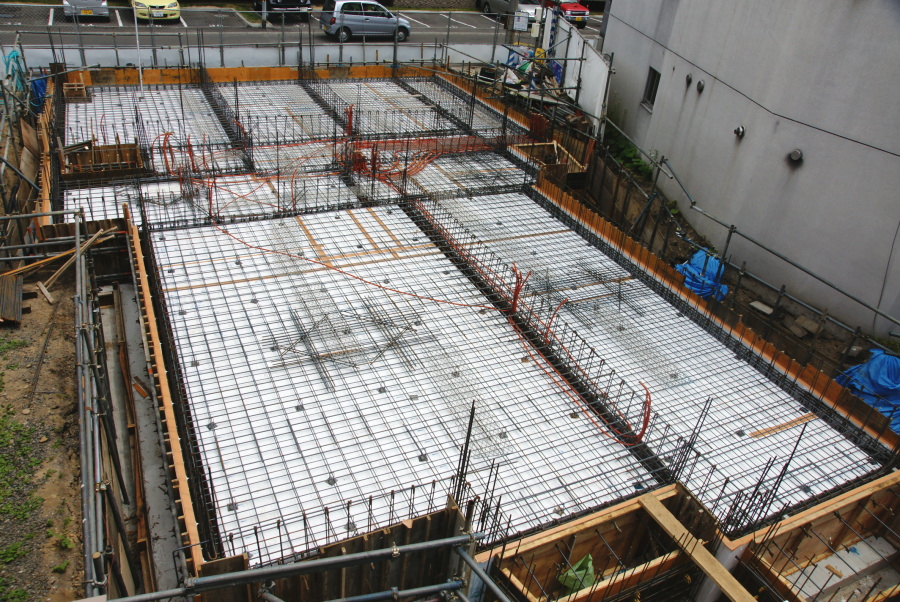 ↓ 7月1日撮影 その上に 数日掛けてスラブ配筋を細かく丁寧に施して・・・・
