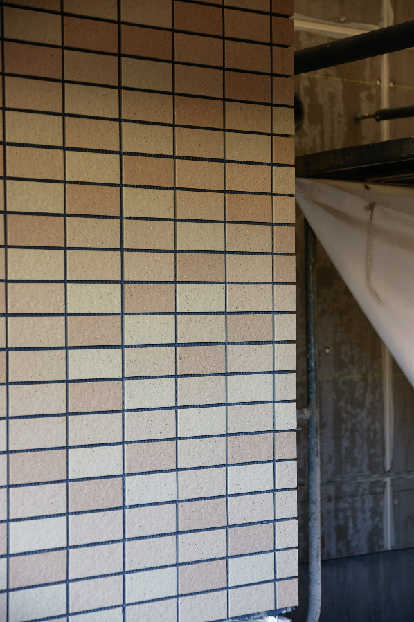 まだ全部ではないけれど 建物の右面から徐々に貼られていってます。