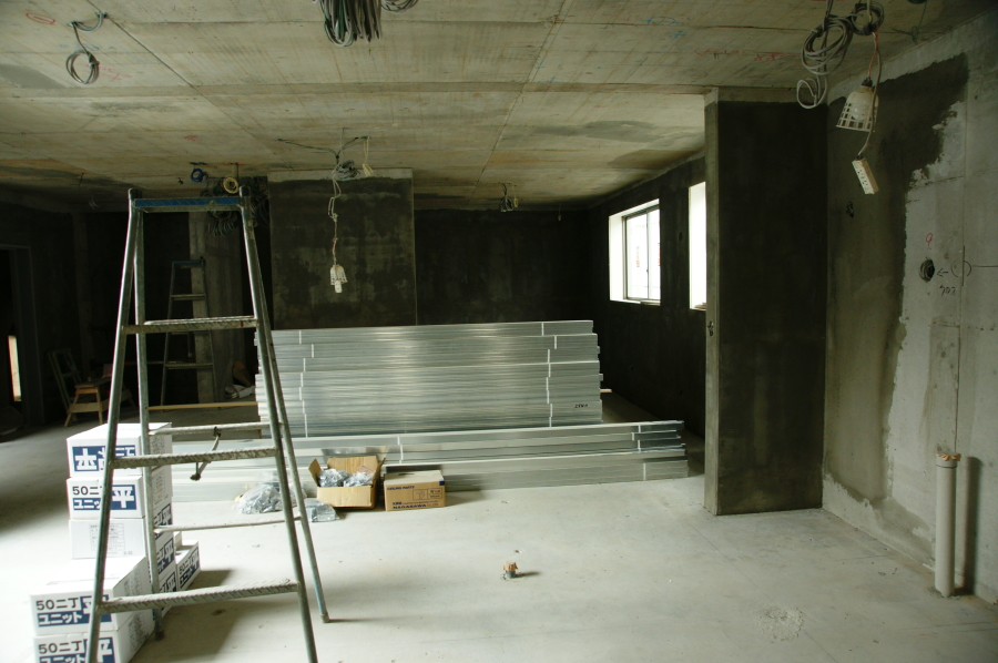 アルミの建築材料が置いてある後ろ側に見える壁から後ろは日本間。