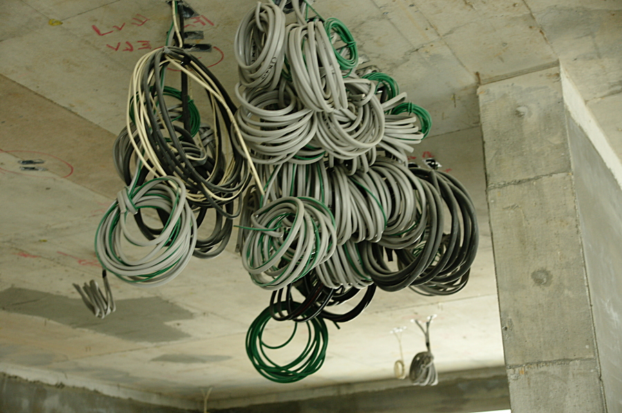その仕切り壁の上には こんなにいっぱいの配線たちがとぐろを巻いていました(笑)