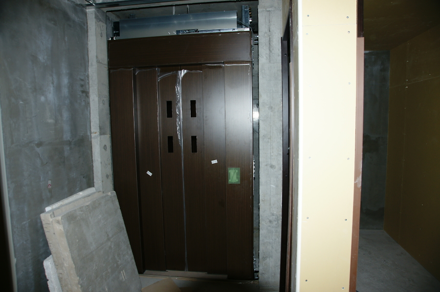 まだ扉だけがついてる状態で 中の籠部分は設置されていません。