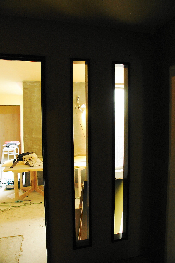 暗くて判りづらいですけど 右側のスリット2本にはガラスブロックが入ります。
