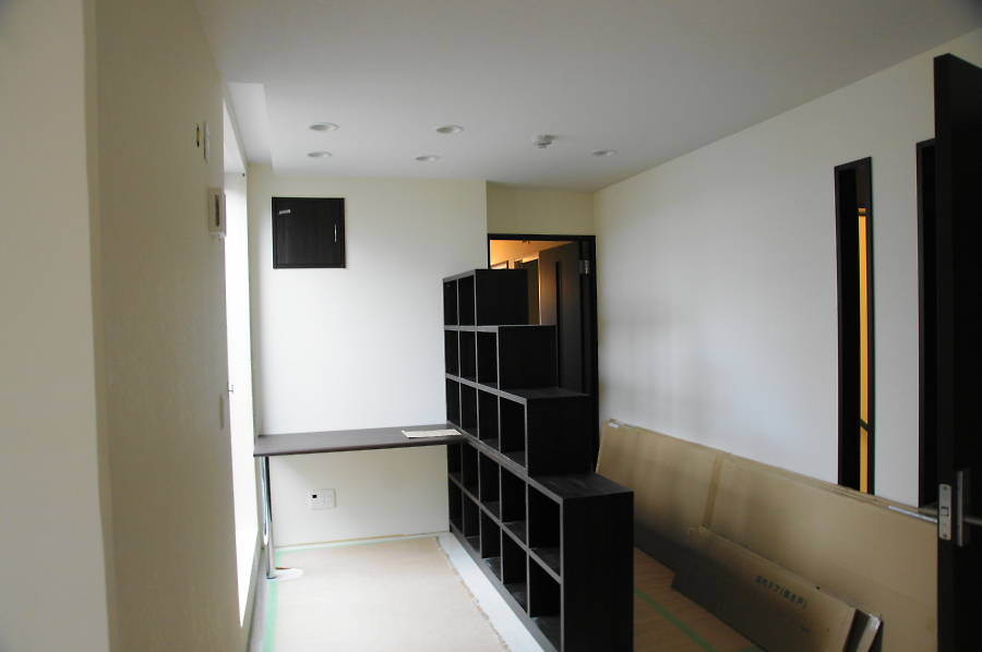 ここを壁で仕切ってしまうと廊下部分が暗くて狭くなってしまうので 苦肉の策です(笑)