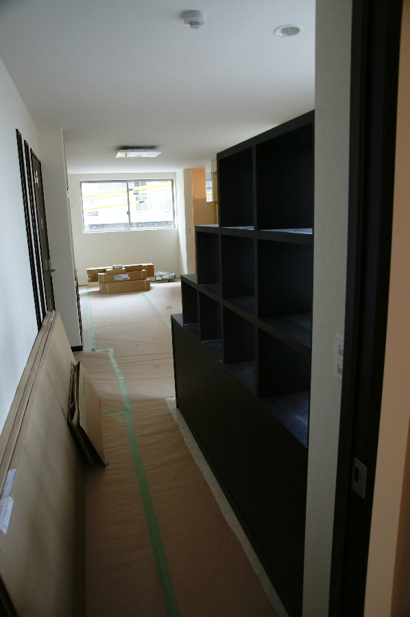廊下側から見ると判ると思いますが 下2段だけ裏側(廊下側)に板を張って頂いて