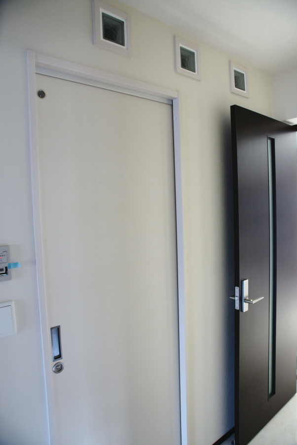 引き戸の上の方にはガラスブロックを3つ入れて頂きました。