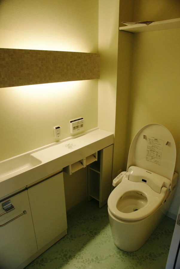 トイレは 壁は淡いグリーン。床もフレッシュグリーンで爽やかな色合いです。