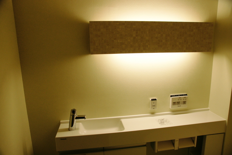 トイレに座った時に 目に直接光が入らない高さを調べて(自分で座って確かめて高さを決めたの)