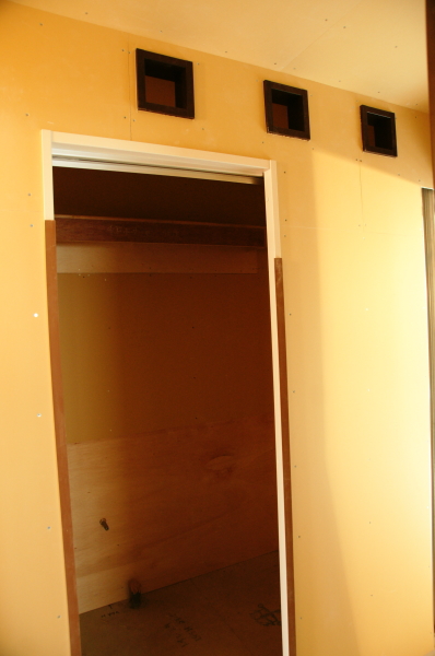 工事中に見せて頂いた時、 このガラスブロックの枠の色が間違ってダークウォルナットになってました(汗)
