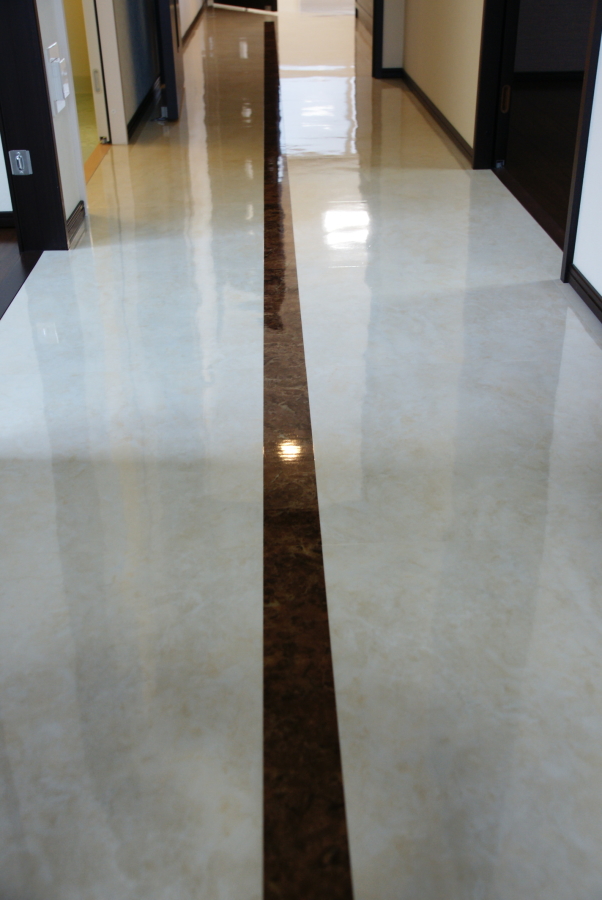 リビング・ダイニングと廊下部分等は 東リのロイヤルストーンを貼って頂きました。