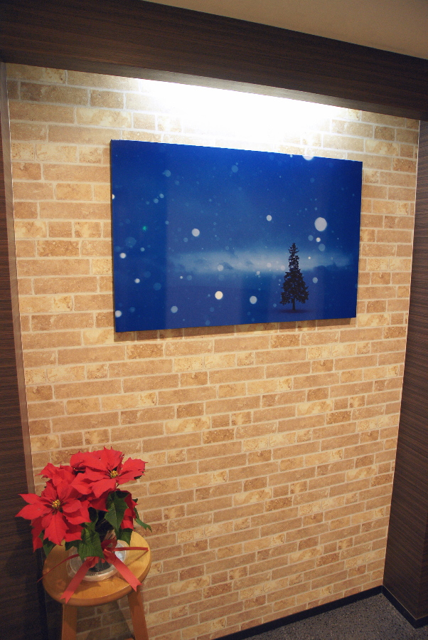 今回は冬なので 美瑛町で撮影したクリスマスツリーの木の写真を飾りました。