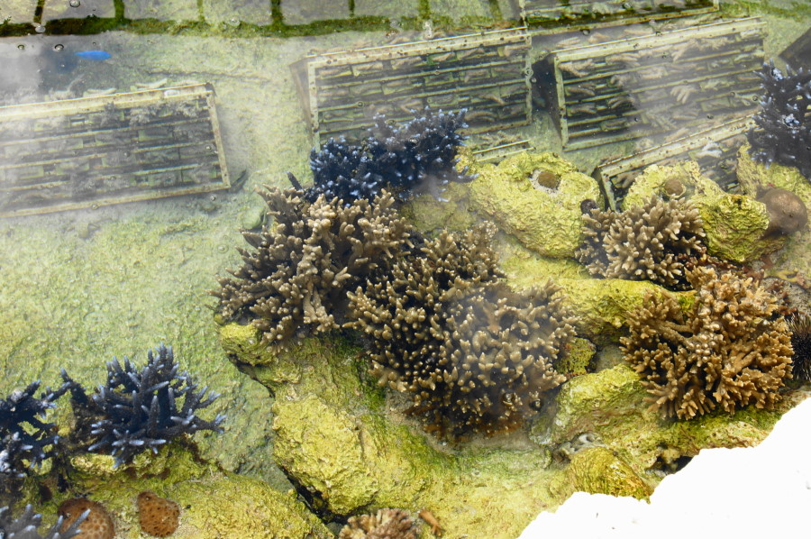 さて 大きな方の水槽では 養殖用に株分けしたサンゴたちが沢山ありました。