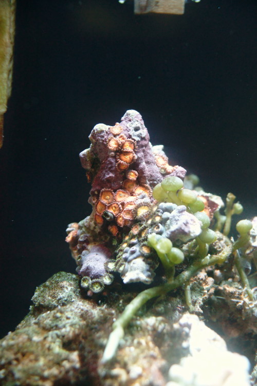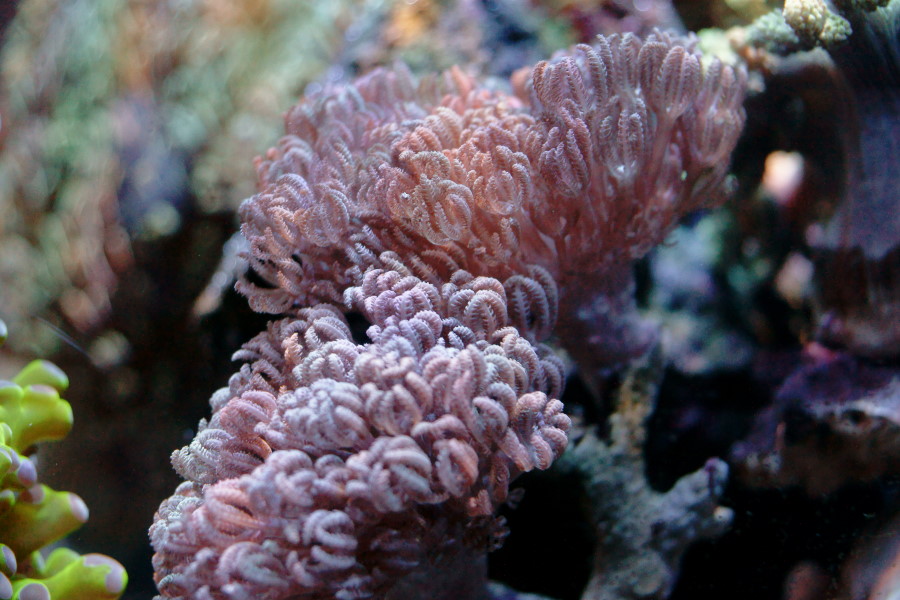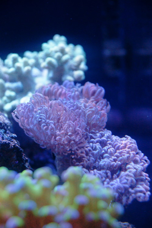 手前のグリーンは 以前からあるコエダナガレハナサンゴです。