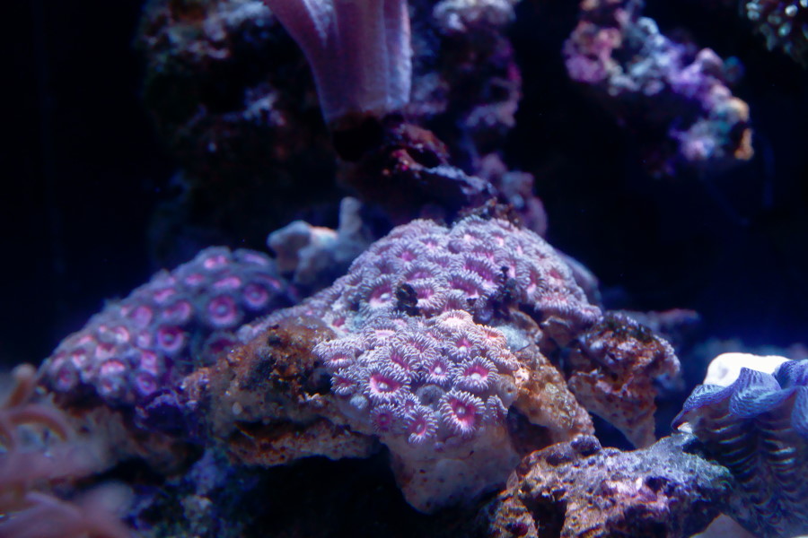 ショッキングピンクに周りがシルバーグレーという感じの小さなポリプを沢山持っています。