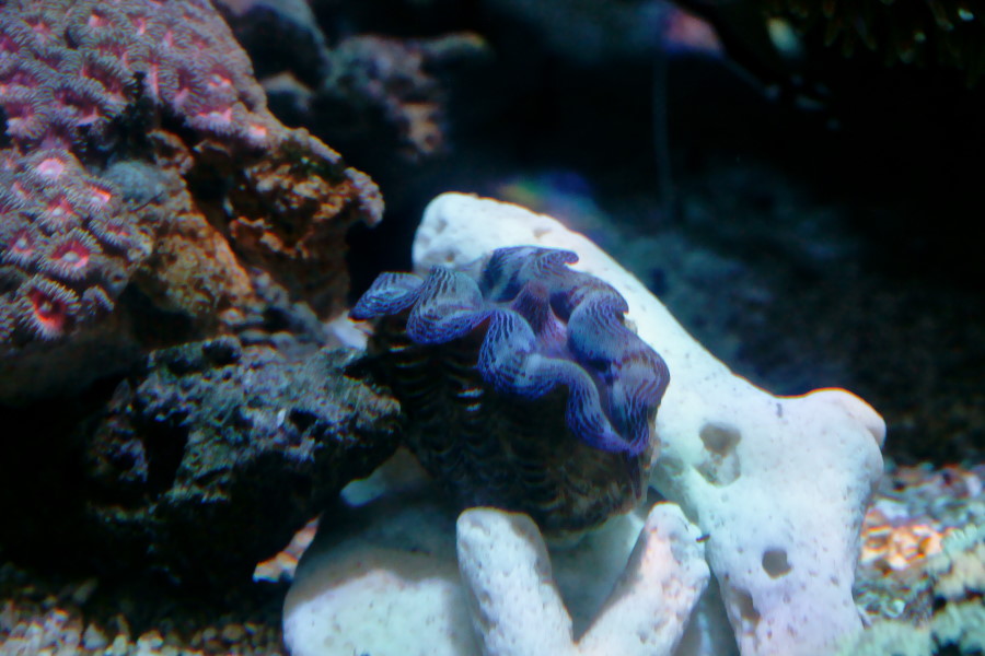 貝が自分で固定するようになるまでは 沖縄の砂浜で拾ってきたサンゴの欠片で抑えてあります(笑)