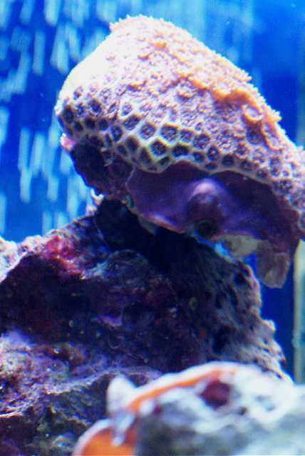マガキ君が ライブロックによじ登る事はあっても 暗くしてある夜は