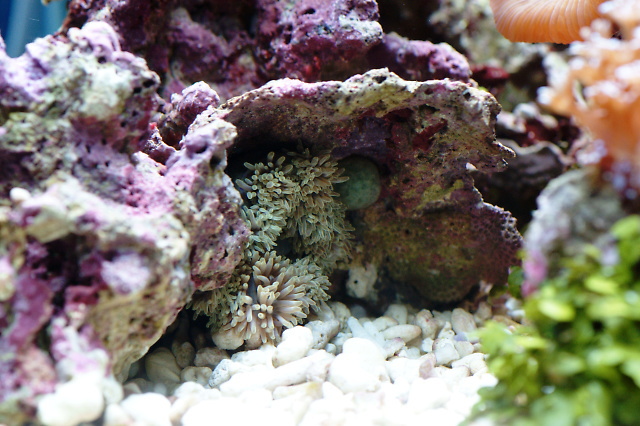 ハタゴイソギンチャクは すっかりライブロックの洞窟が気に入って縦に張り付いてます(笑)