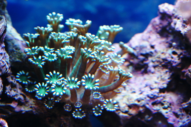 大きくポリプを伸ばして見事に咲いてるハナガサオレンジに新参のアワグリーン。