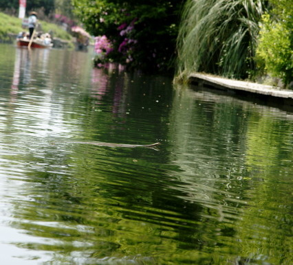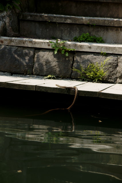 フッと見ると 何やら水を横切る物体が?!