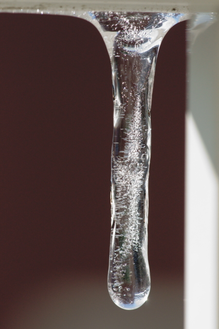 日が差した一瞬に融けかかったので ツララの雫が撮れるかと待ってたけど
